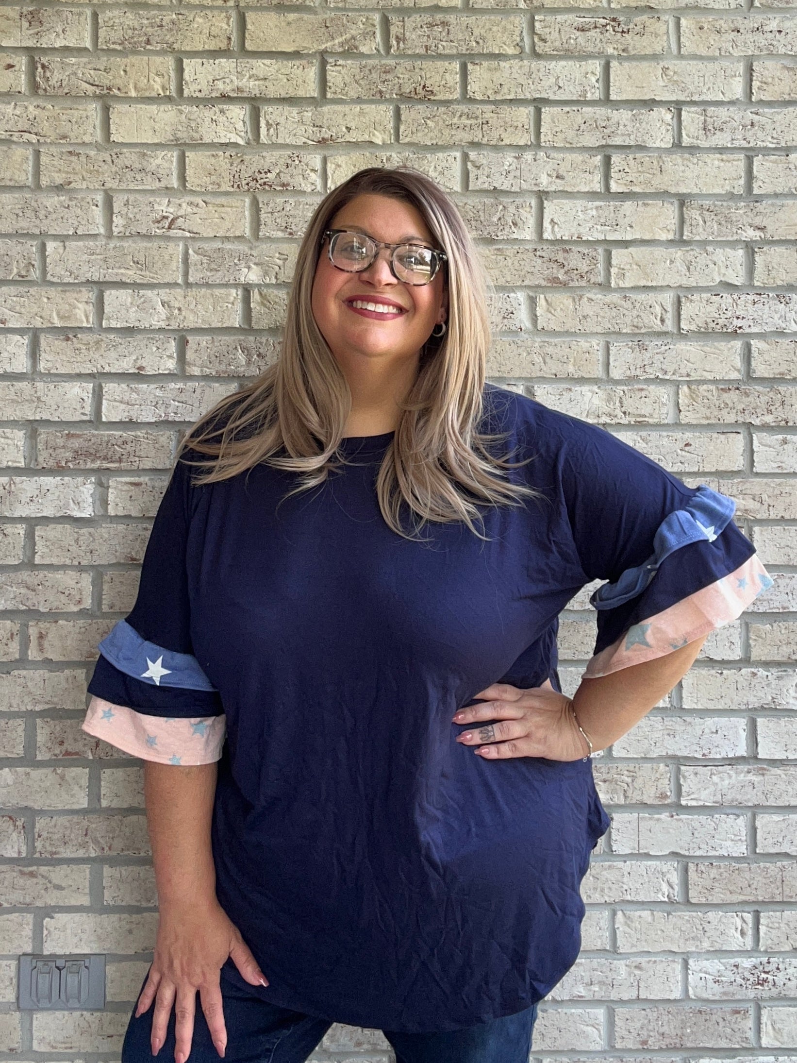 Umgee Full Size Two Tone Toile Print Top Plus Size